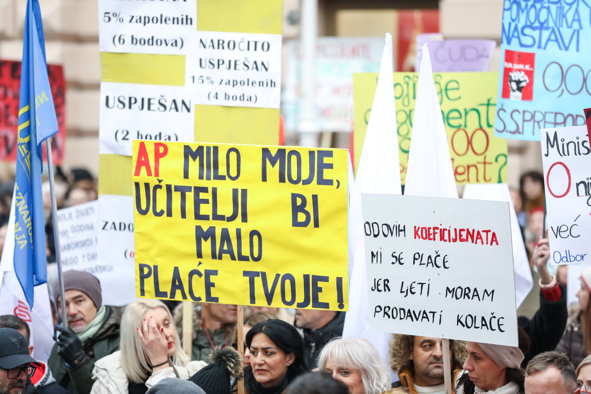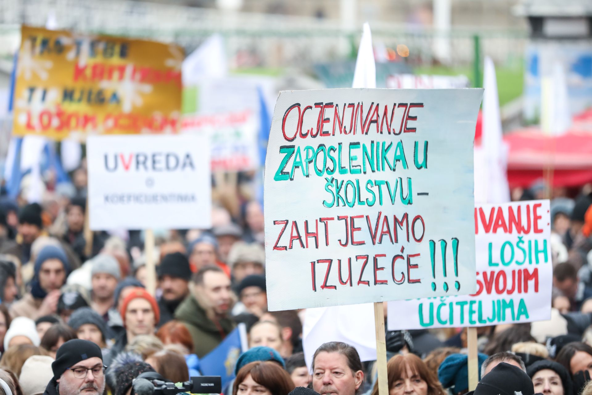 Tisuće prosvjednika pozvalo Vladu da izuzme obrazovanje i znanost iz novog sustava ocjenjivanja te ispravi nepravde i nered koje je nanijela novim sustavom koeficijenata. Kako je to izgledalo, saznajte u priloženoj fotogaleriji